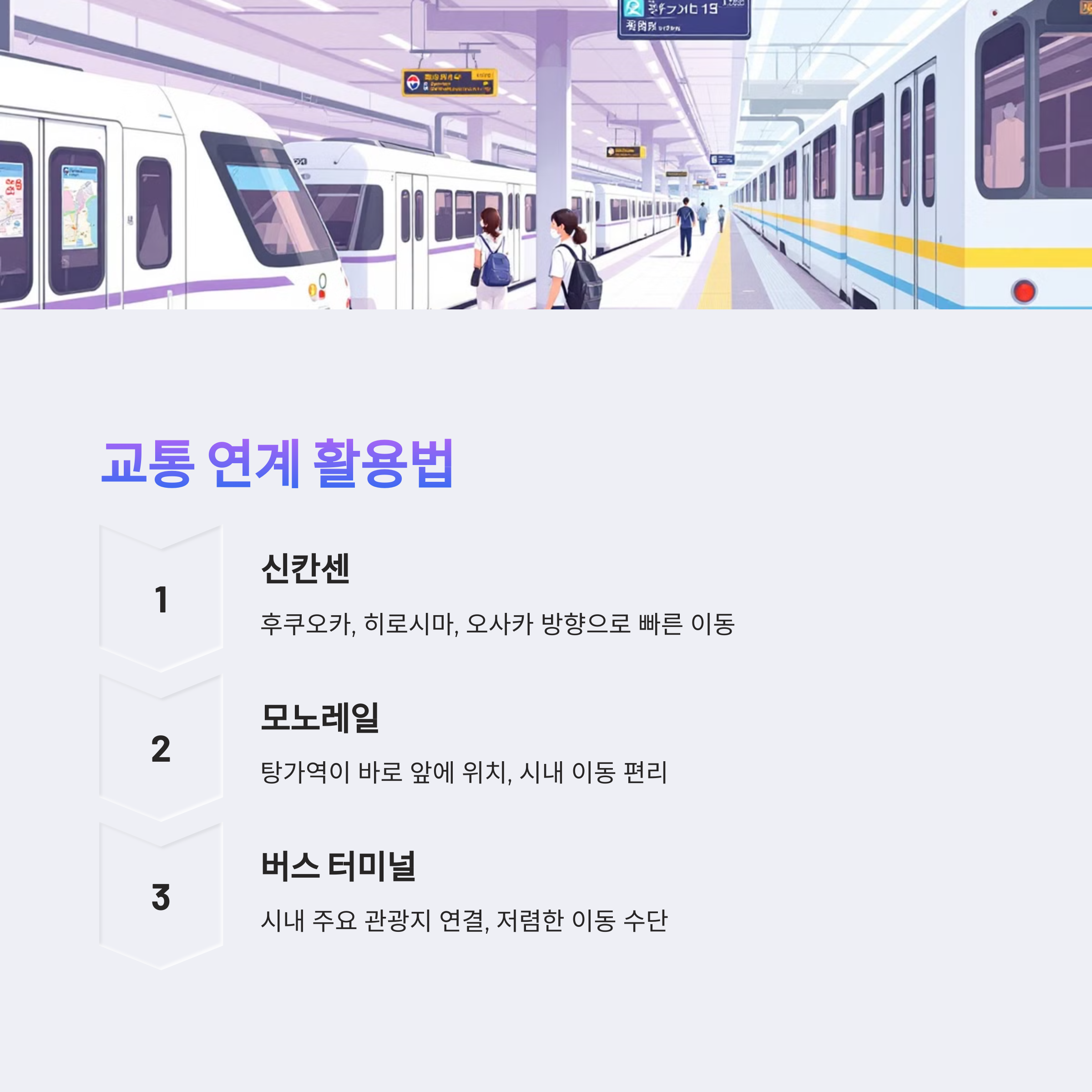 - 신칸센: 후쿠오카, 히로시마, 오사카 방향