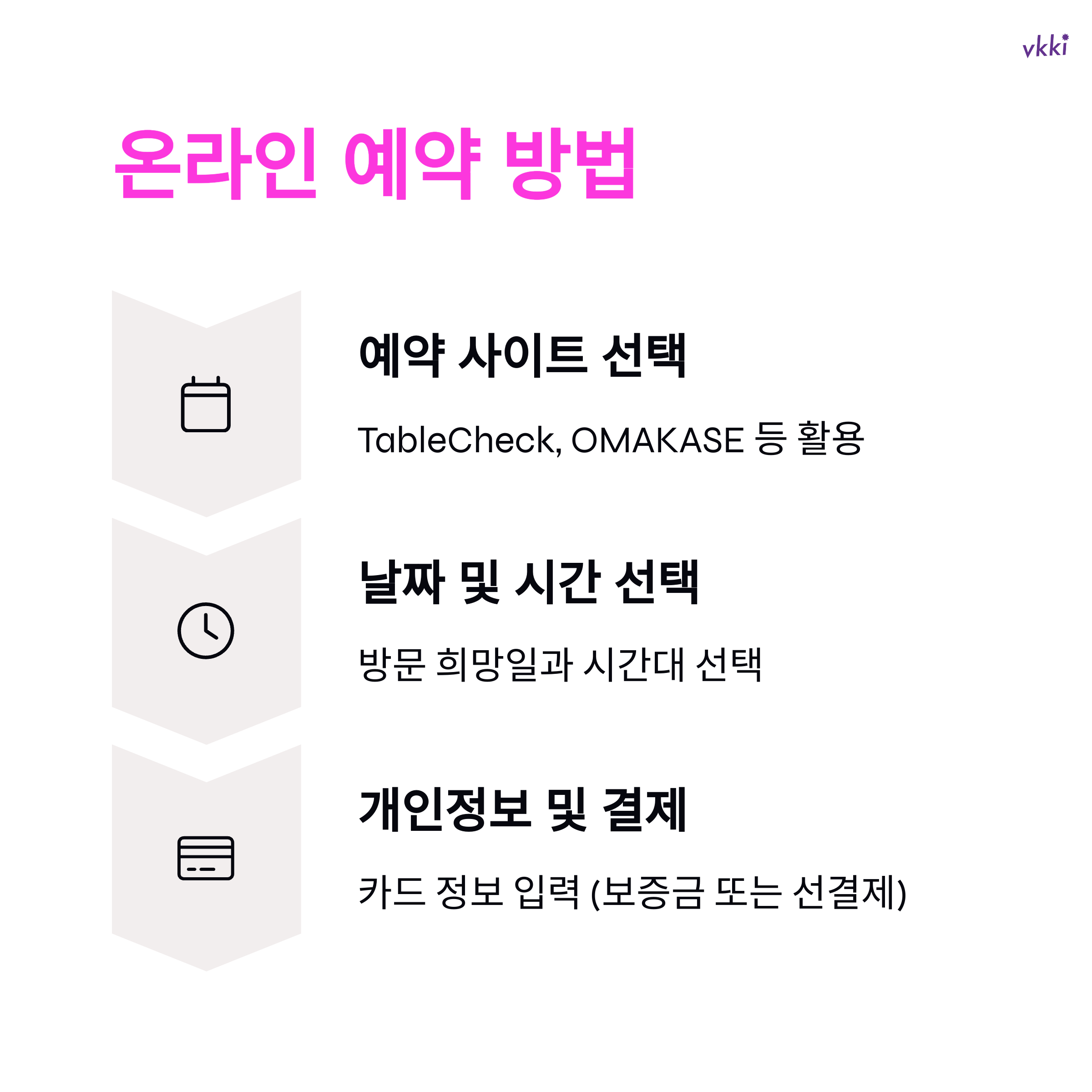 - 예약 방법: TableCheck 사이트 이용