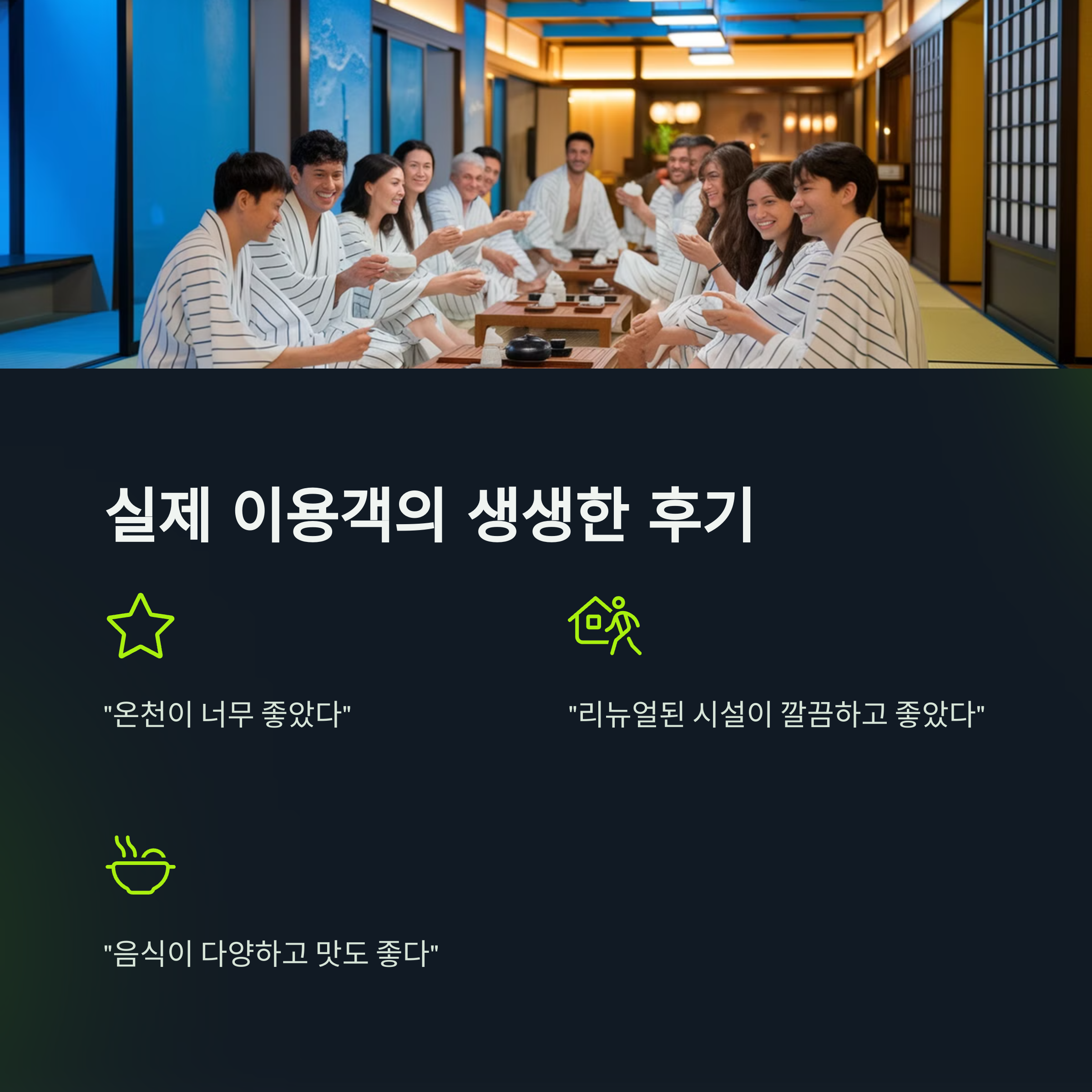 | 비교 항목 | 스기노이 온천리조트 | 일반 료칸 |