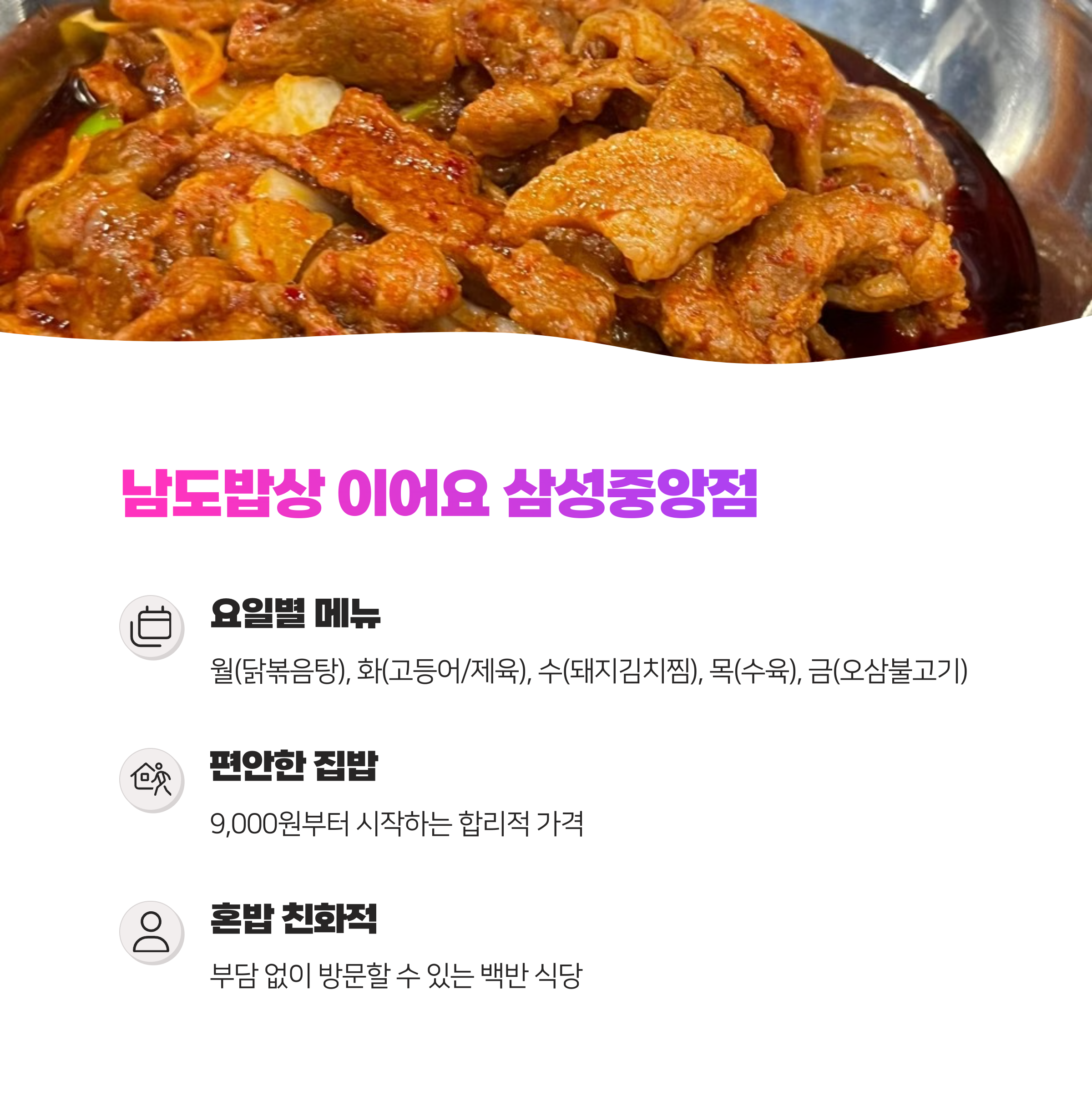 - 남도밥상 이어요: 요일별 백반, 집밥 느낌 가득