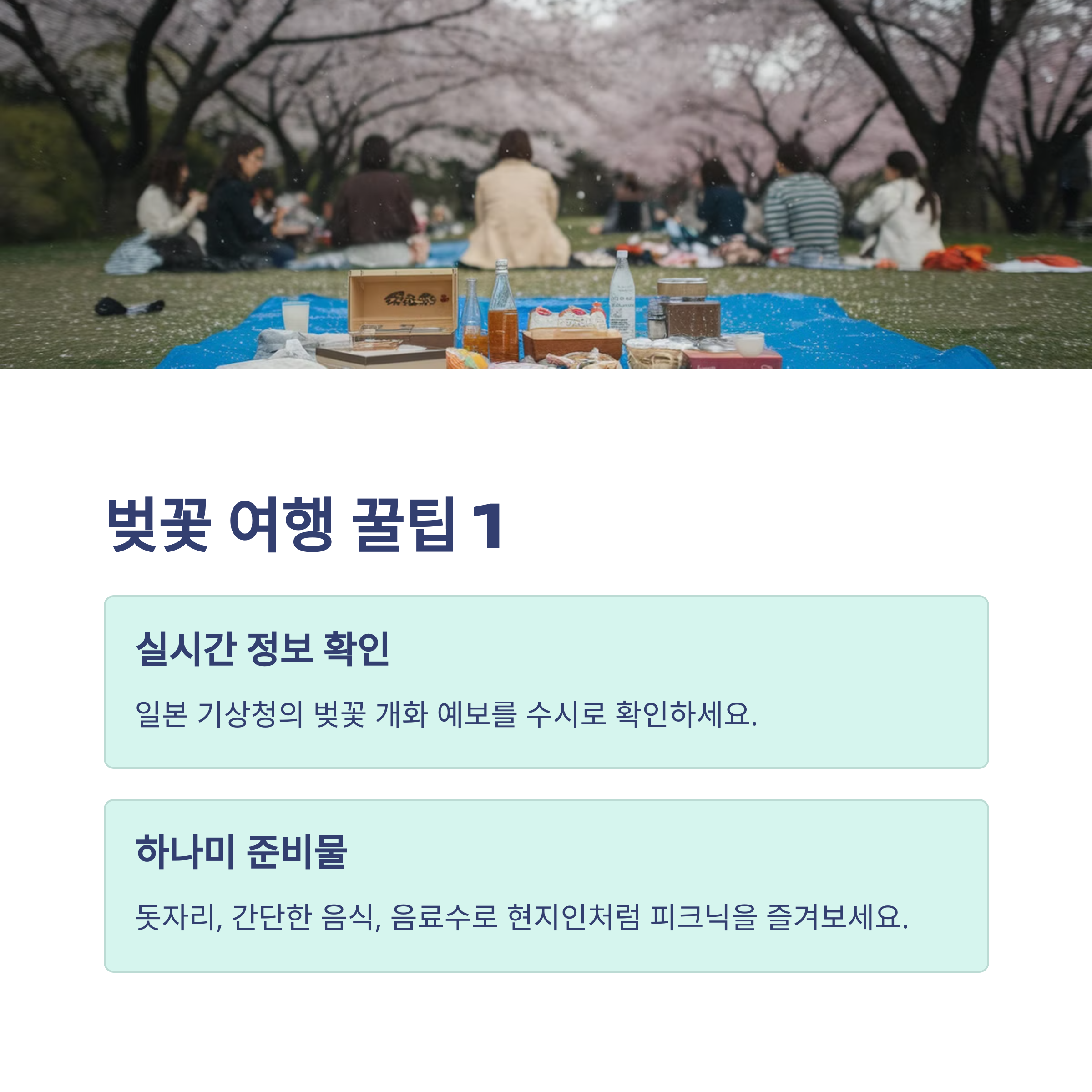 1. 벚꽃 개화 정보 실시간 확인하기: 일본 기상청의 벚꽃 개화 예보를 수시로 확인하세요. 날씨 변화에 따라 개화 시기가 앞당겨지거나 늦춰질 수 있어요.