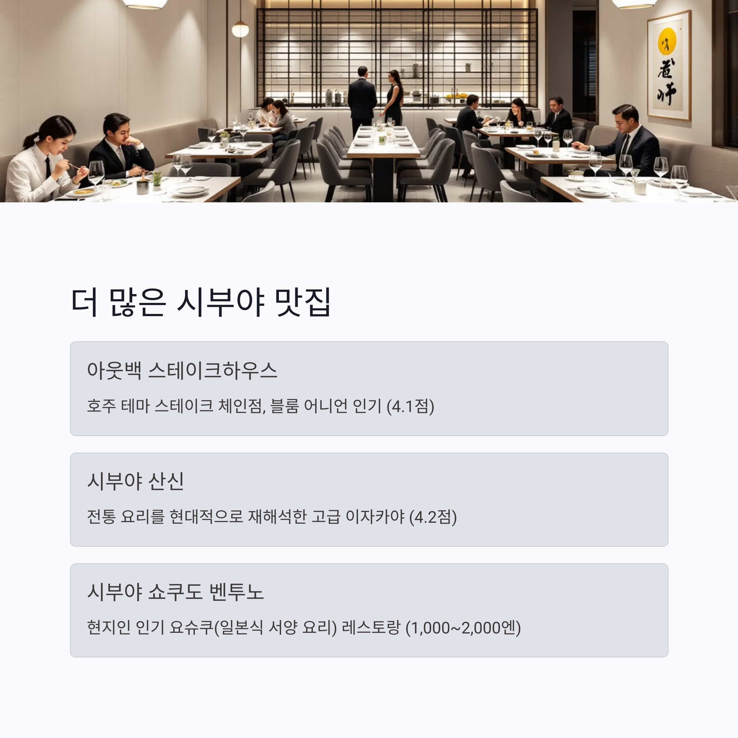 여러분의 시부야 맛집 경험이 궁금해요! 혹시 다녀오셨다면 어떤 곳이 가장 좋았는지 댓글로 공유해주세요~ 😊