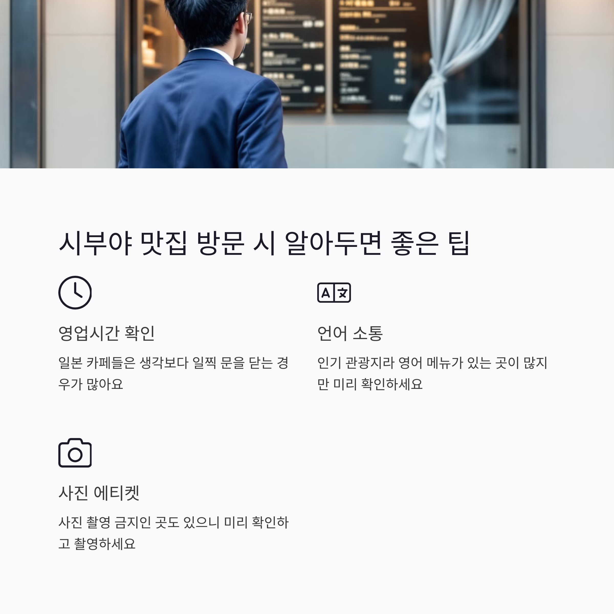 - 카페 영업 시간 확인: 일본 카페들은 생각보다 일찍 문을 닫는 경우가 많아요. 방문 전에 영업 시간을 꼭 확인하세요.