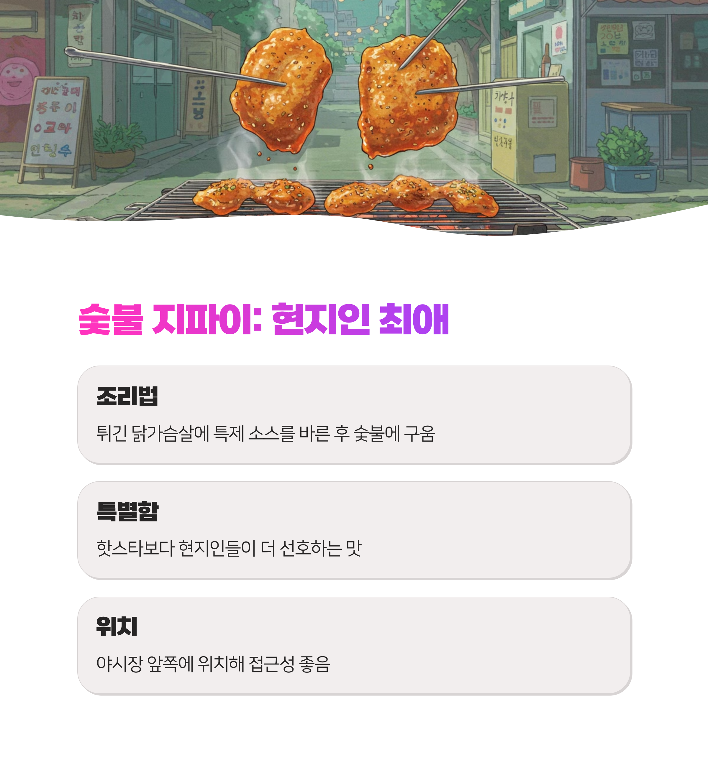 - ✔️ 숯불 지파이 : 불맛 입힌 프리미엄 닭튀김