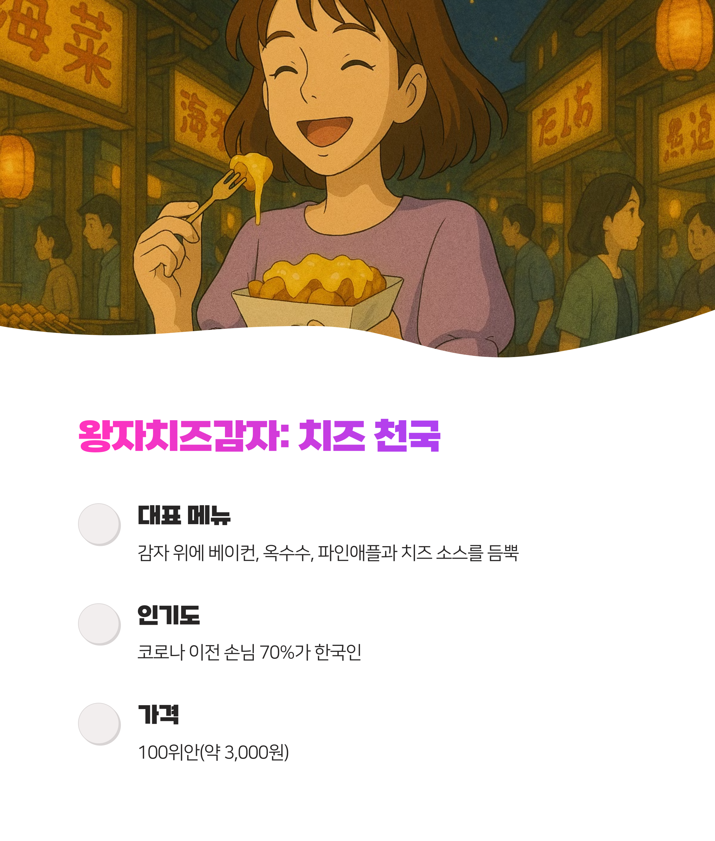 - ✔️ 왕자치즈감자 : 치즈 폭포와 감자의 환상 콜라보