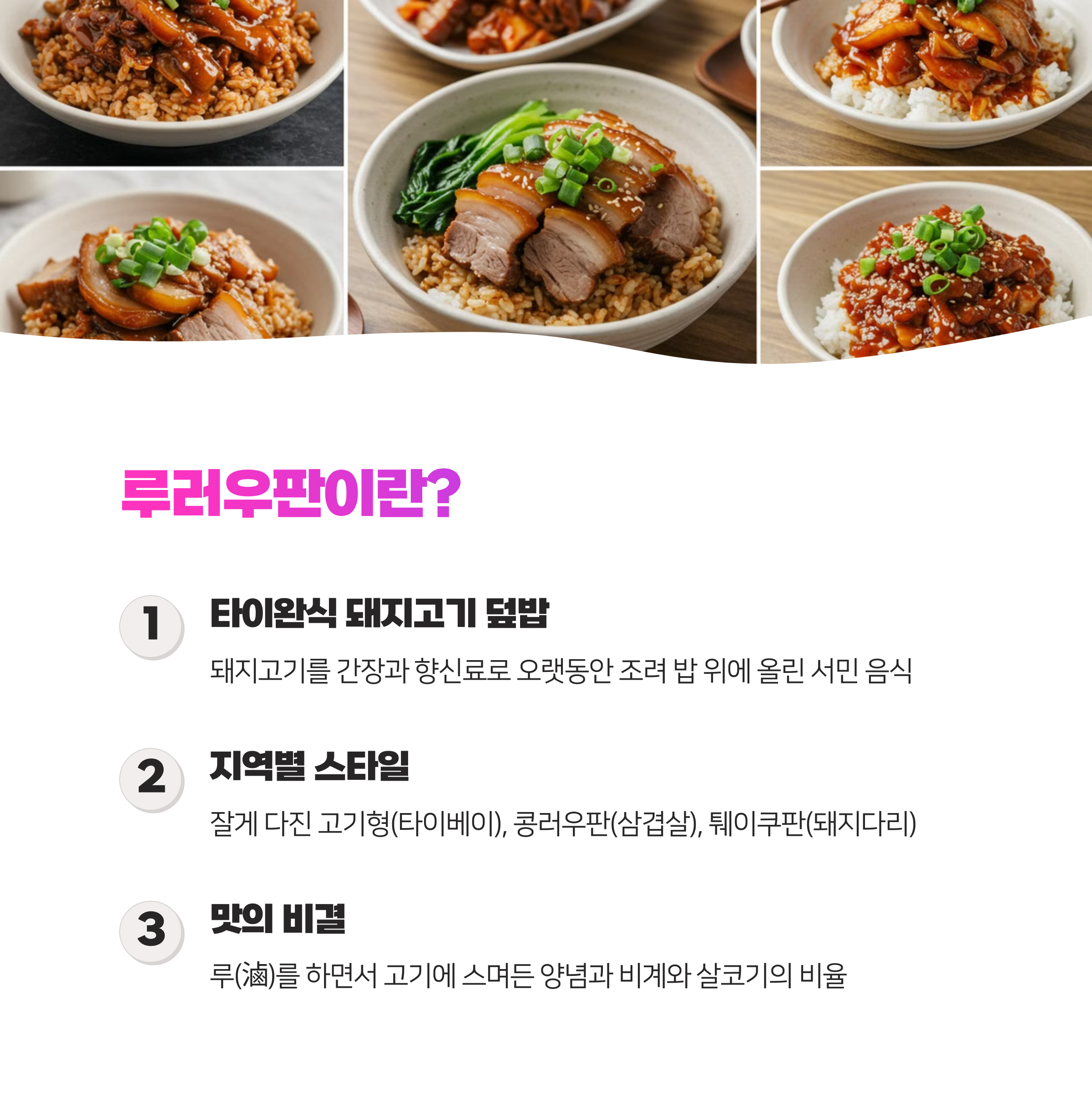 돼지고기 마니아라면 놓치지 말아야 할 루러우판 명가 총정리! 깊은 풍미와 중독성 있는 맛의 향연이 펼쳐집니다. 🍚🥩