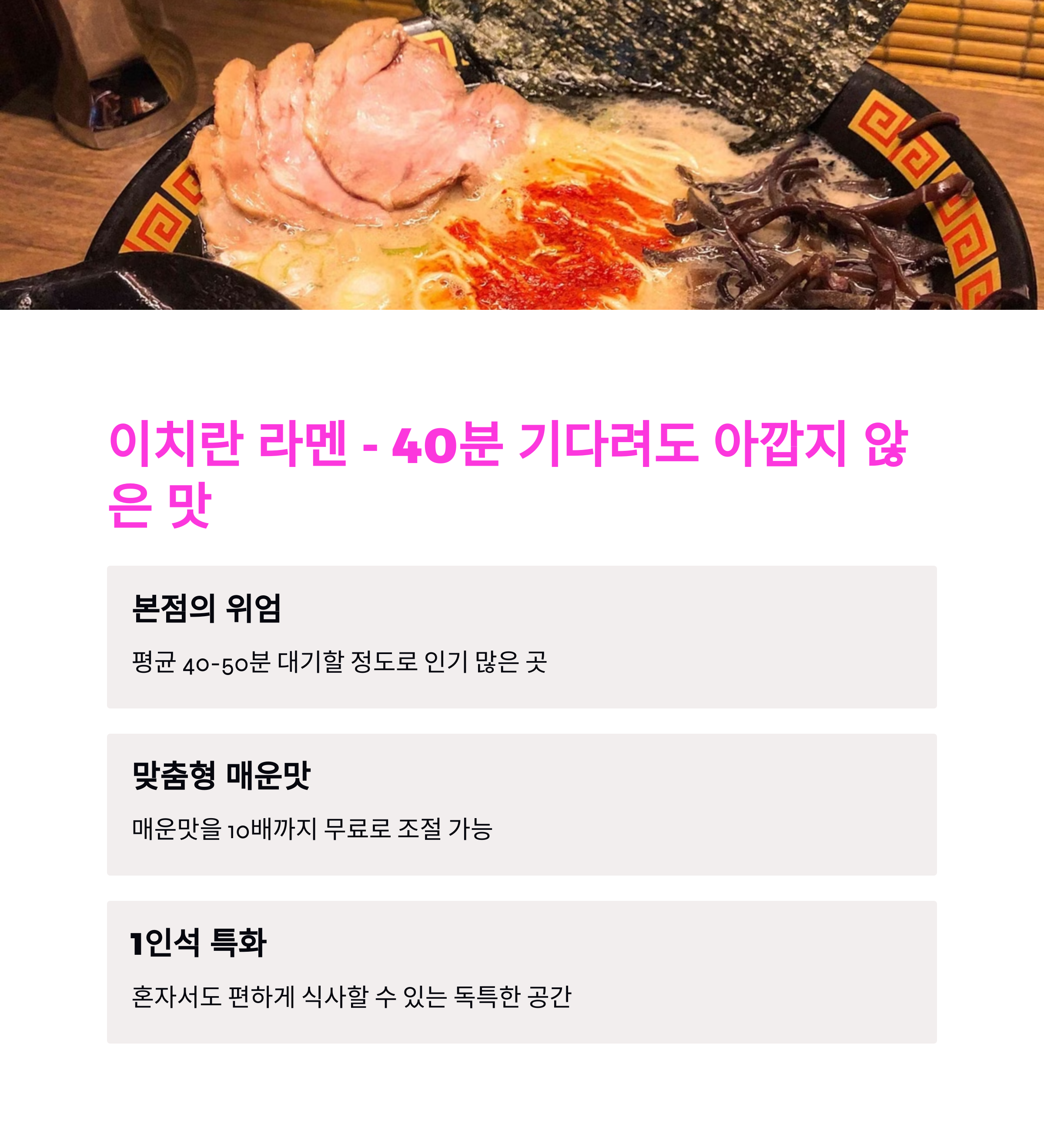 3. 이치란 라멘 - 40분 기다려도 아깝지 않은 맛