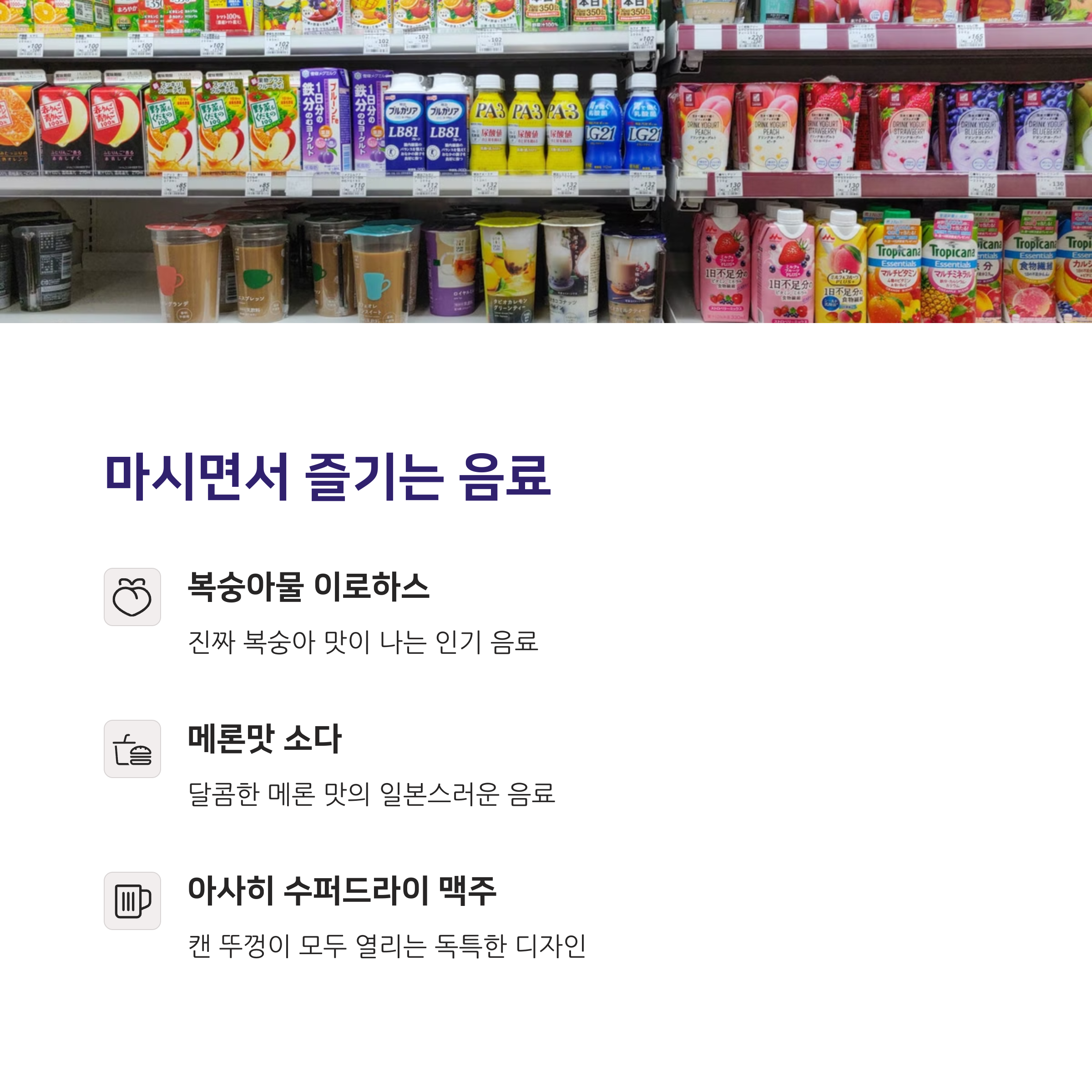 일본에서 너무 유명한 복숭아물! 요즘은 편의점에서 찾기 어려워지고 있으니 보이면 바로 구매하세요. 인공적인 향이 아닌 진짜 복숭아 맛이 나서 인기가 많아요.