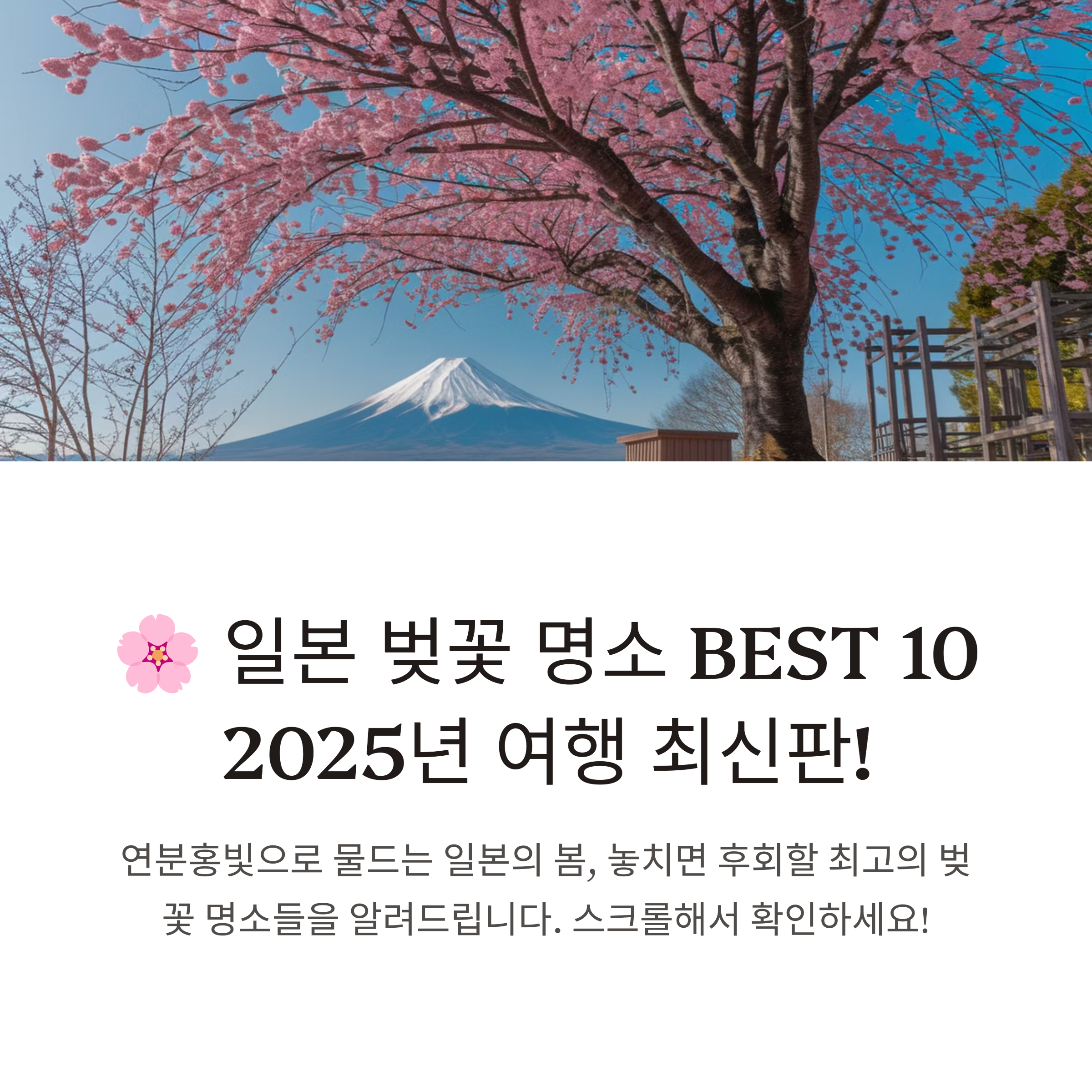 안녕하세요! 🌸 봄이 다가오면서 일본의 아름다운 벚꽃 명소에 대한 관심이 높아지고 있어요. 연분홍빛으로 물드는 일본의 봄을 제대로 즐길 수 있는 최고의 명소들을 소개해 드릴게요!